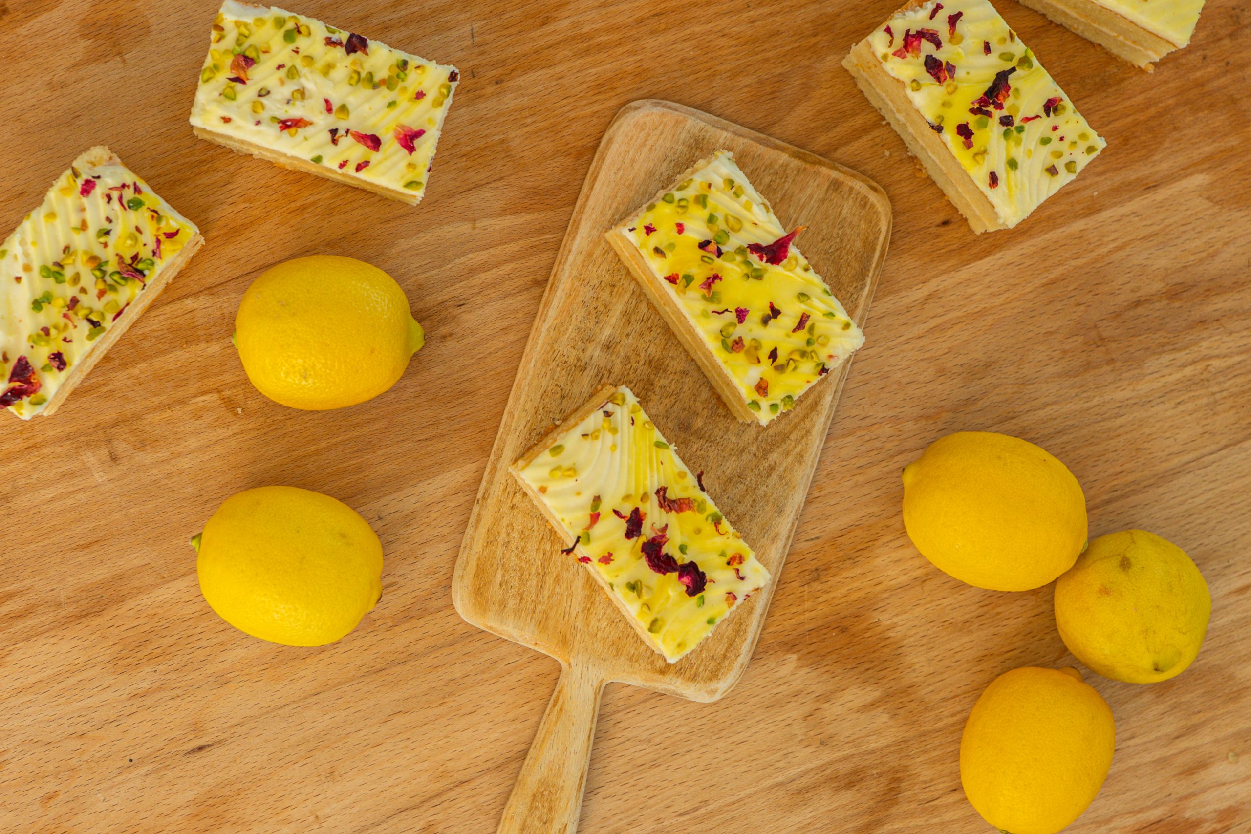 This isn’t just a lemon cake. It’s a beautifully balanced blend of tangy citrus, floral geranium, and nutty pistachio, handcrafted to deliver a truly distinctive taste experience.