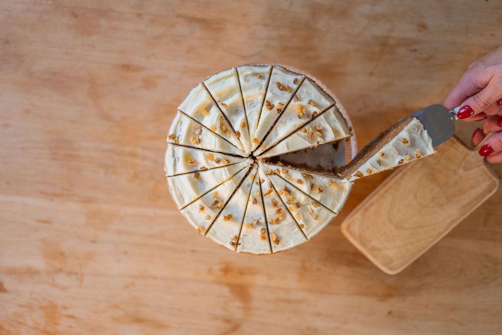 Our carrot cake offers a delightful blend of warm spices and sweet, moist carrot sponge, filled and covered with smooth cream cheese buttercream. Topped with nibbed walnuts for added texture and flavour, this cake is a wholesome treat that’s sure to delight your customers.
